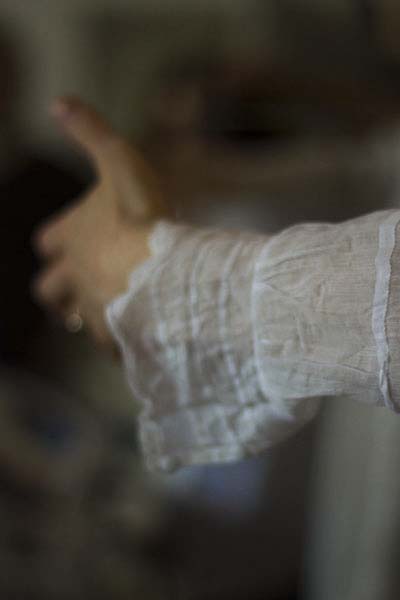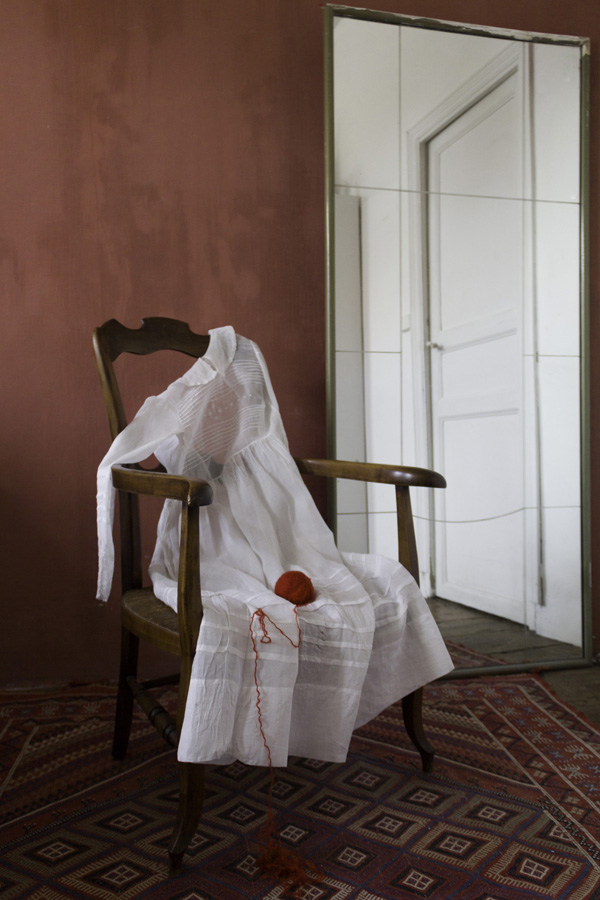 Les images que je montre sous le titre « lieux communs » ont été déclenchées par une robe. La petite robe blanche que ma mère portait lors de sa communion solennelle, en 1934 ou 1935.Les images ont suivi pour évoquer un fil (rouge) de vie, un mystère, une conformité.Je me suis prêtée au jeu. Au «je » et au « genre ». Ma fiction n’appelle pas à être prise au pied de la lettre, mais invite à marcher sur un fil.Je suis entrée dans un espace occupé par des signifiants communs, des images, des représentations qui affectent la trame de vie des femmes nées au début du siècle précédent. Des lieux communs. Territorialisés.